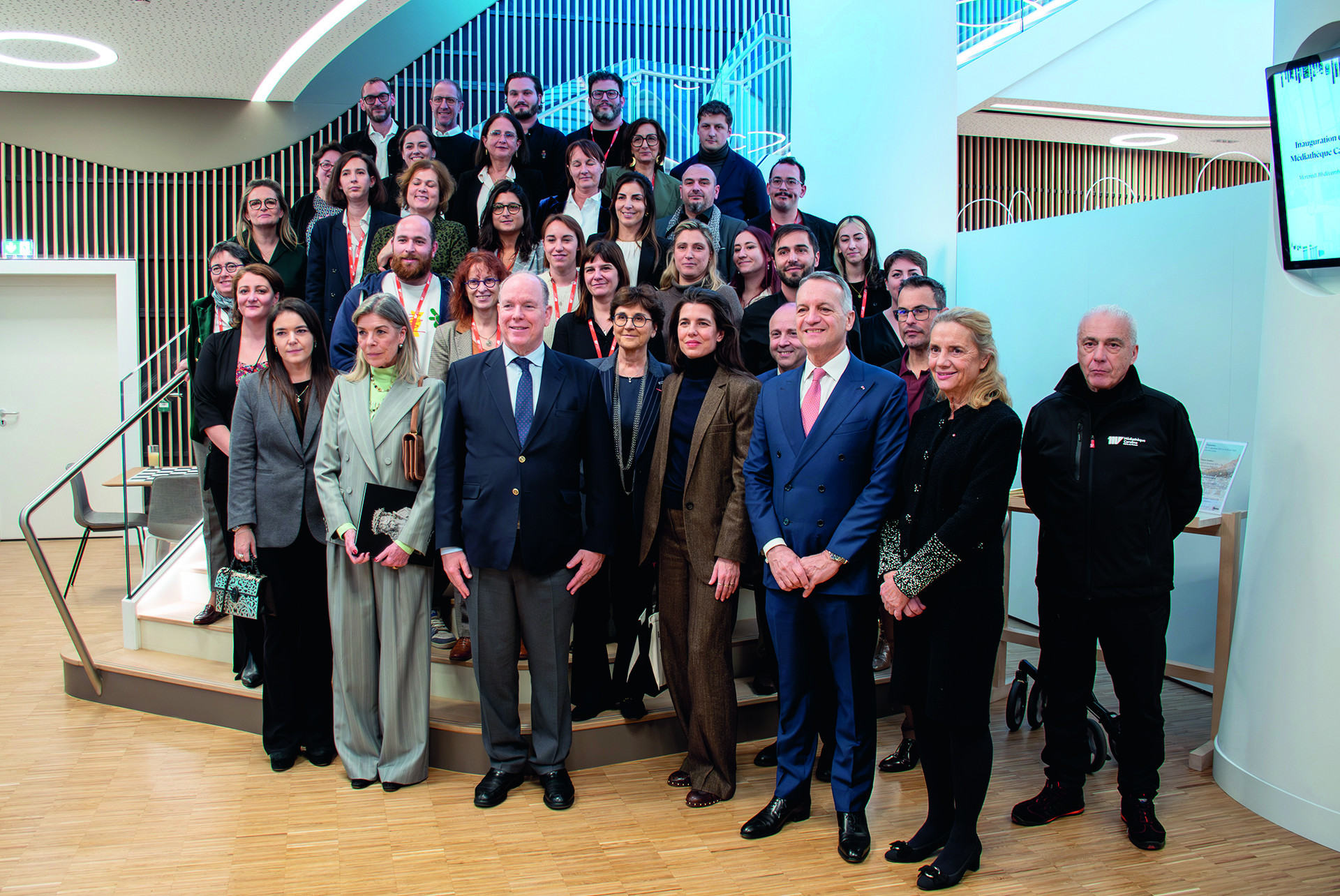 À l’image du lieu, son inauguration, le 10 décembre dernier, a été ponctuée par des moments artistiques des plus singuliers. S.A.S. le Prince Albert II, S.A.R. la Princesse de Hanovre et les Hautes Autorités de la Principauté, ont été accueillis par le Maire Georges Marsan, Camille Svara, 1ère Adjointe au Maire, Déléguée à la Médiathèque et Béatrice Novaretti, Cheffe de Service de la Médiathèque Caroline. La troupe BAL d’Arts Légers a proposé une visite des lieux théâtralisée autour d’un spectacle des plus originaux pour présenter ce très bel écrin culturel. Les visiteurs ont eu le plaisir de découvrir à leur tour ce spectacle le week-end suivant l’inauguration.