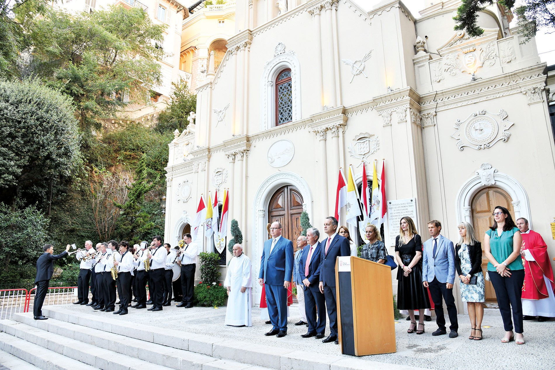 Souverain en l’Eglise Sainte-Dévote, où une messe était célébrée par Monseigneur Bernard Barsi, Archevêque de Monaco, le Chanoine César Penzo et le Père Jean-Christophe Genson. A la fin de l’office, S.A.S. le Prince Albert II a dévoilé une plaque commémorative de l’événement, accompagné en musique par le chanteur corse Jean Menconi, et la chorale d’U Cantin d’A Roca. À l’issue de la messe, l’ensemble des officiels se sont réunis autour du Souverain et des deux maires sur la Place Sainte-Dévote où une plaque identique à celle désormais apposée en l’Eglise Sainte-Dévote a été offerte à la ville de Lucciana. La réception s’est poursuivie avec les hymnes monégasque et français interprétés par la Musique Municipale, suivis des danses traditionnelles de la Palladienne avant de s’achever par un chaleureux cocktail.