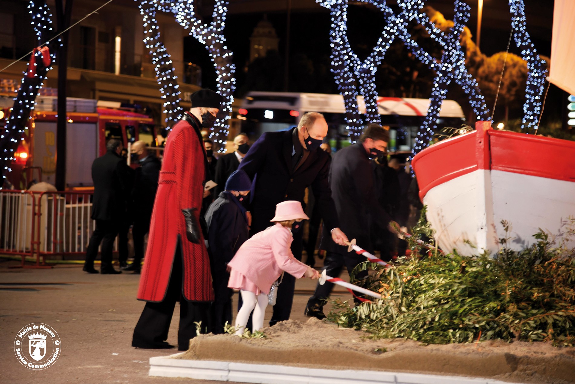 En raison des contraintes sanitaires et du couvre-feu, le format des célébrations de la Sainte Dévote a dû être modifié. Ainsi, les festivités ont débuté plus tôt qu’à l’accoutumée ce mardi 26 janvier. Santa Devota, la barque transportant les reliques de Sainte Dévote (voir l’encadré ci-dessous) est entrée dans le Port Hercule à 17h15, alors que la nuit n’était pas encore tombée. Elles ont ensuite été acheminées par les membres du clergé jusqu’à l’Eglise Sainte-Dévote où le Salut du Très Saint Sacrement a été prononcé par Monseigneur David, Archevêque de Monaco. À son issue, l’embrasement de la barque par le Prince Albert II, la Princesse Charlène, le Prince Héréditaire Jacques et la Princesse Gabriella, s’est déroulé au son de la Musique Municipale non pas sur le parvis de l’Eglise Sainte-Dévote mais sur le Quai Albert Ier où une zone réservée au public de 150 places assises avait été installée afin de respecter les mesures de distanciation. Contrairement à la tradition, le public n’a pas pu aller récupérer les clous dans les cendres de la barque. De même, le feu d’artifice a dû être annulé.